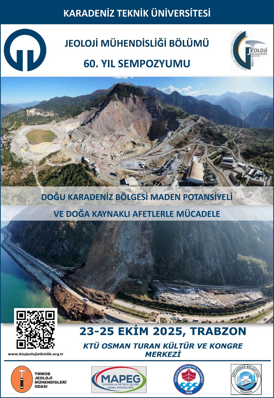 KTÜ JEOLOJİ MÜHENDİSLİĞİ BÖLÜMÜ 60. YIL SEMPOZYUMU       Doğu Karadeniz Bölgesi Maden Potansiyeli ve Doğa Kaynaklı Afetlerle Mücadele       KTÜ JEOLOJİ MÜHENDİSLİĞİ BÖLÜMÜ 60. YIL SEMPOZYUMU
